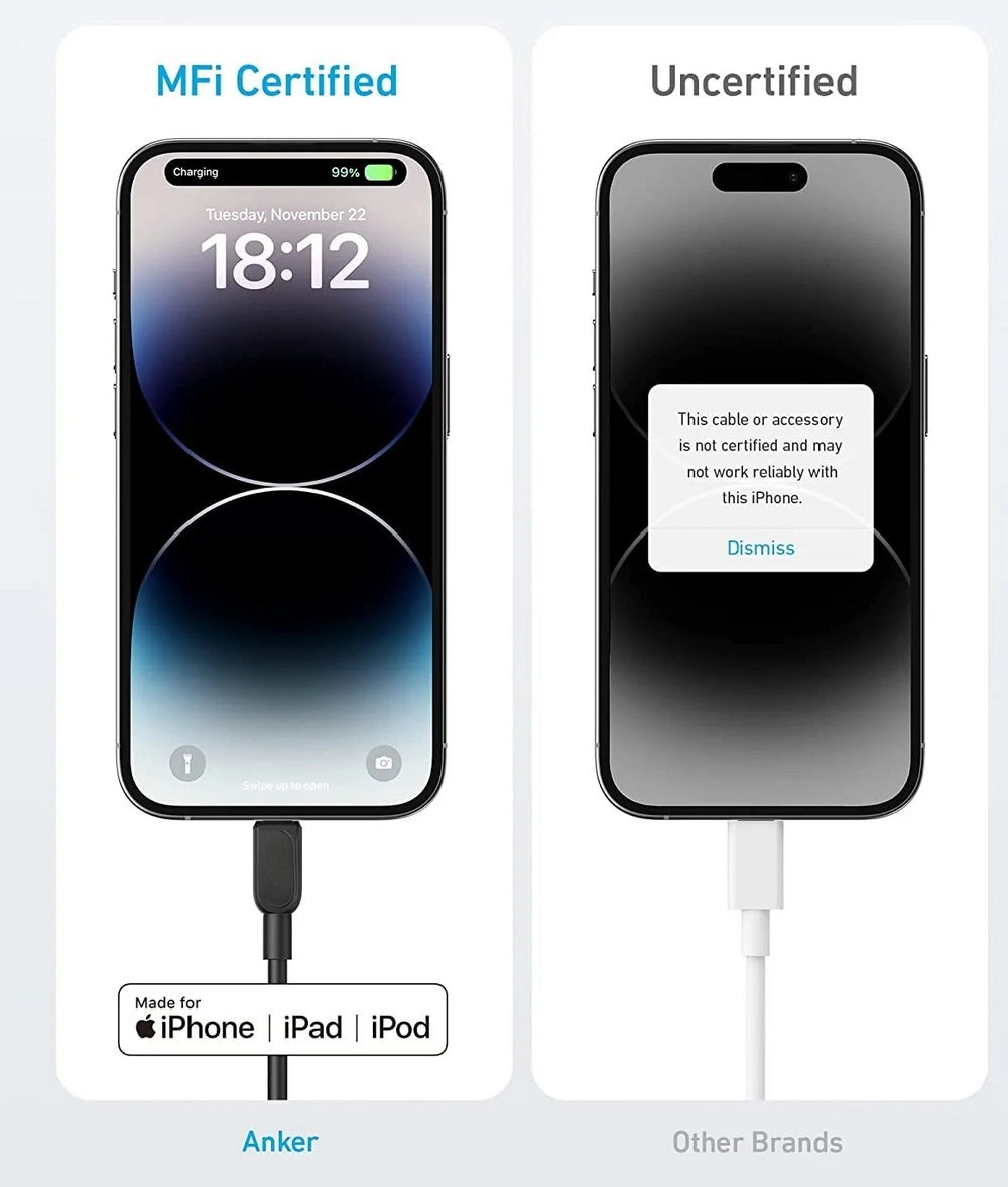 This iPhone charger cable is MFi certified for flawless compatibility with Lightning devices, ensuring a safe and reliable charge—every time.