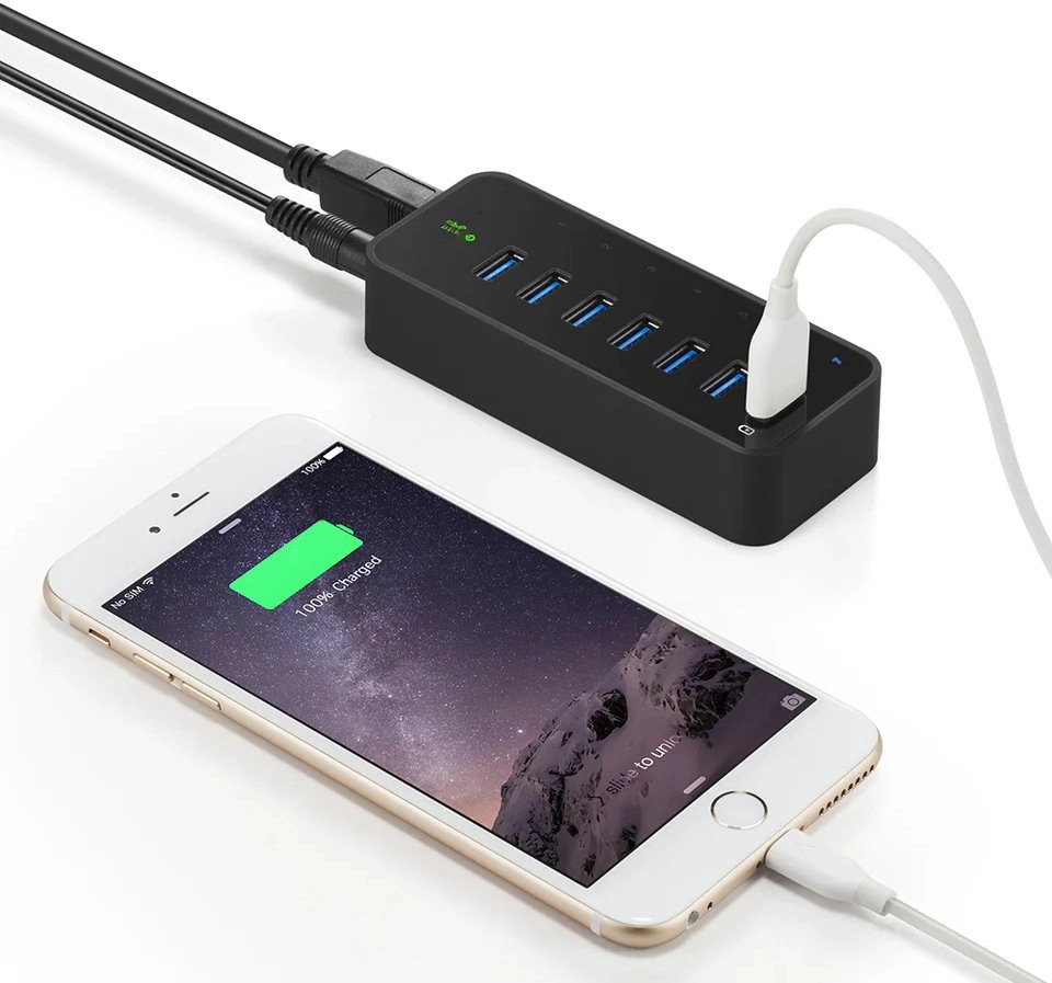 s.handsome 7-Port USB 3. 0 Data Hub Expand and accelerate your data transfer and charging.