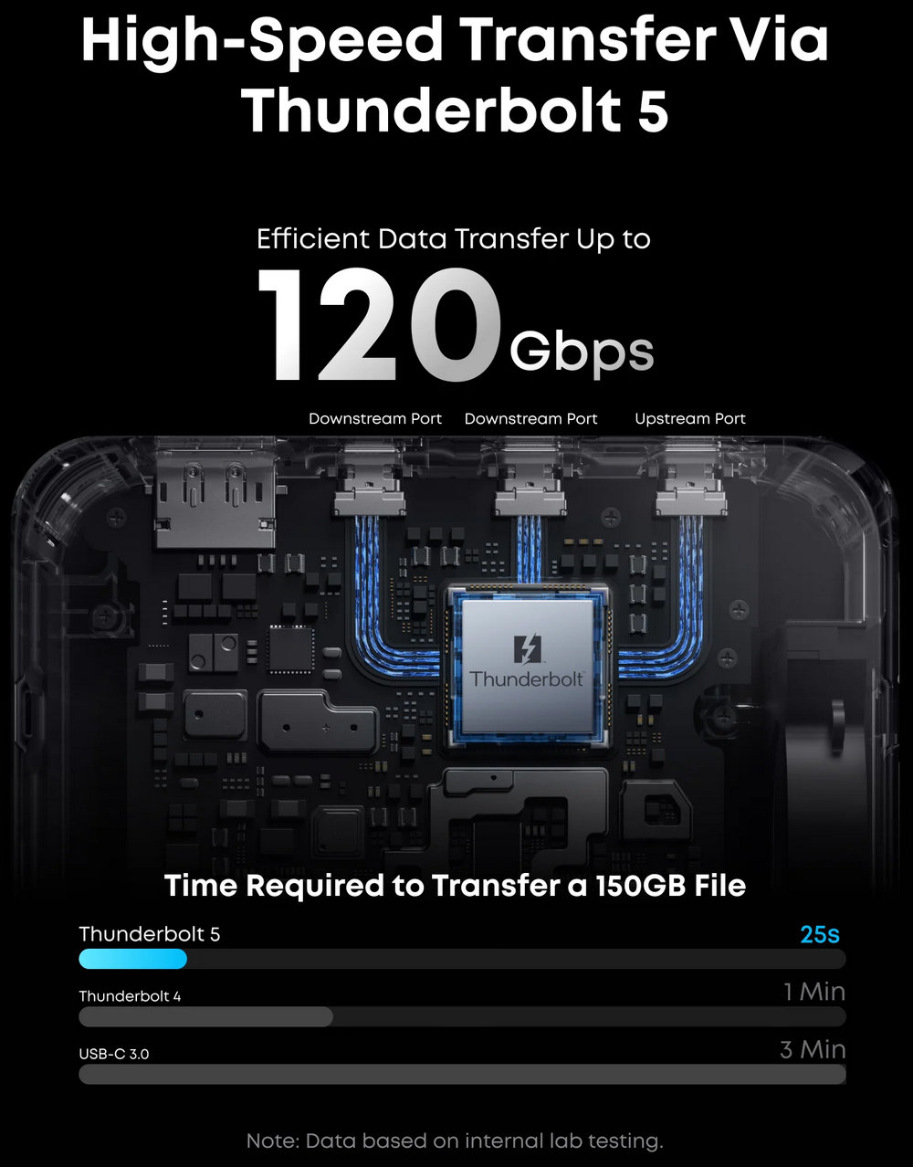 The Speed You Need for Large Files: Transfer massive files quickly—move a 150GB file in just 25 seconds with the Thunderbolt 5 port.