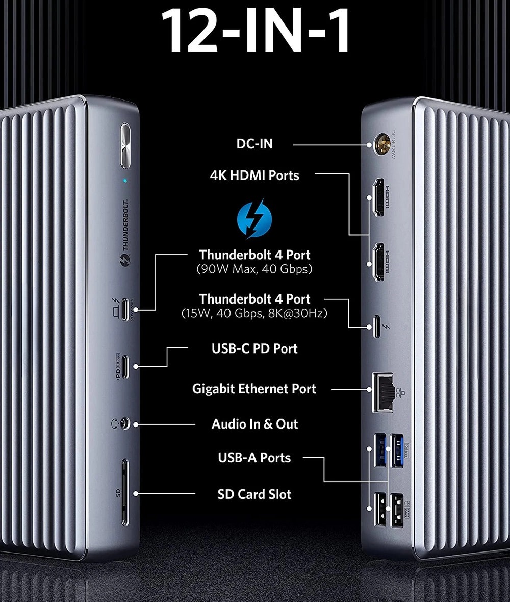 s.handsome 777 Thunderbolt Docking Station (Apex, 12-in-1, Thunderbolt 4)