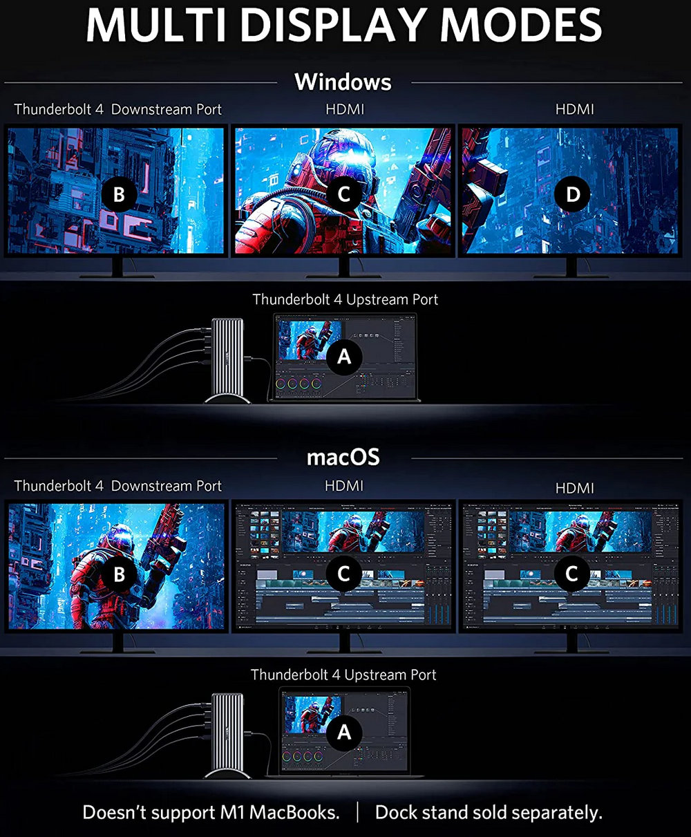 Compatible with Windows 10 laptops equipped with a Thunderbolt 4 port (Intel Evo Platform), and non-M1 and M1 Max/Pro MacBooks running macOS 11 (Big Sur) or later.