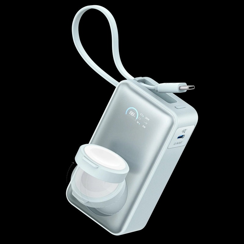 Compact as a standard mouse at just 3.7 × 2.0 × 1.3 inches, it fits effortlessly into pockets or bags. Fully flight-approved, the power bank offers hassle-free travel charging, providing about two full charges for iPhone 15 Pro and up to 11 charges for Apple Watch Series 9.