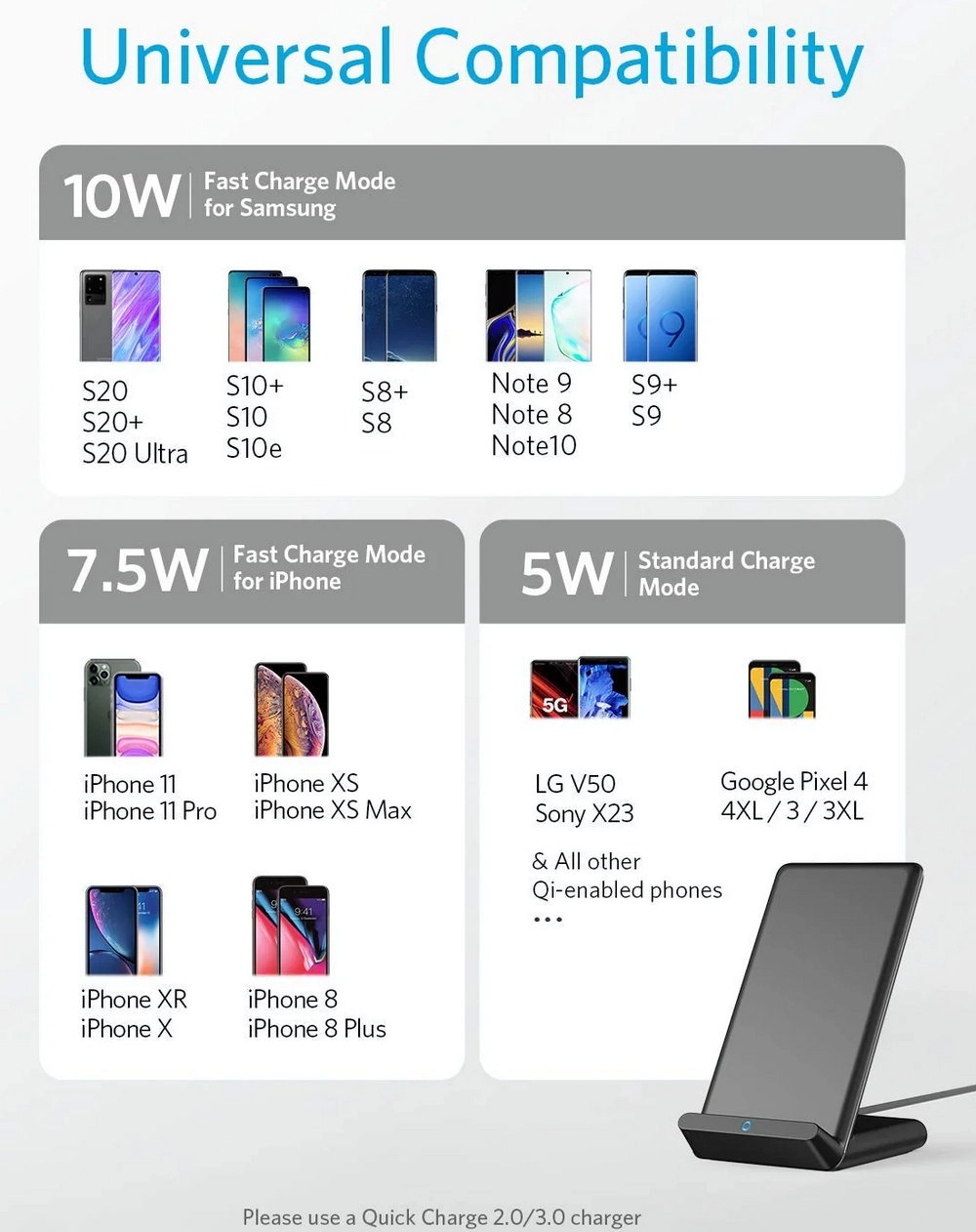 Do not use Apple's 5V / 1A stock charger or a computer's USB port to power your wireless charger.