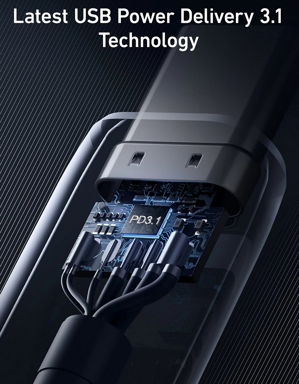 By using an E-marker with support for the latest USB Power Delivery 3.1 technology, we've been able to raise the maximum charging output to 240W. That means it can support fast charging for a greater range of devices, including laptops, tablets, and phones.