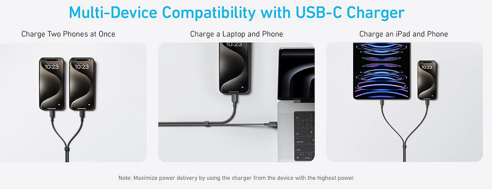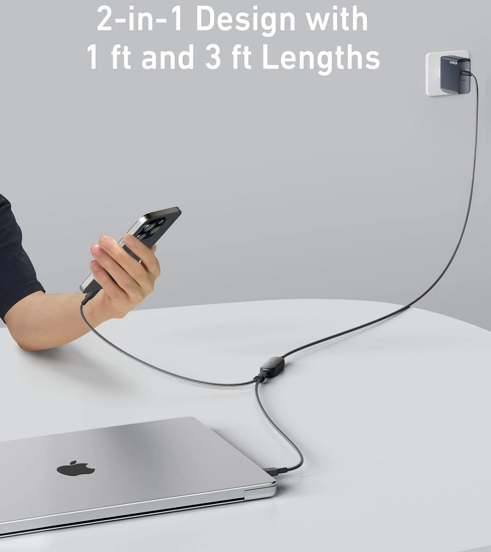 Double Up on Charging: Experience efficient dual-device charging with the 2-in-1, 140W Power Delivery cable. Capable of data transfers up to 480 Mbps and designed with a durable nylon exterior, it offers both performance and longevity.