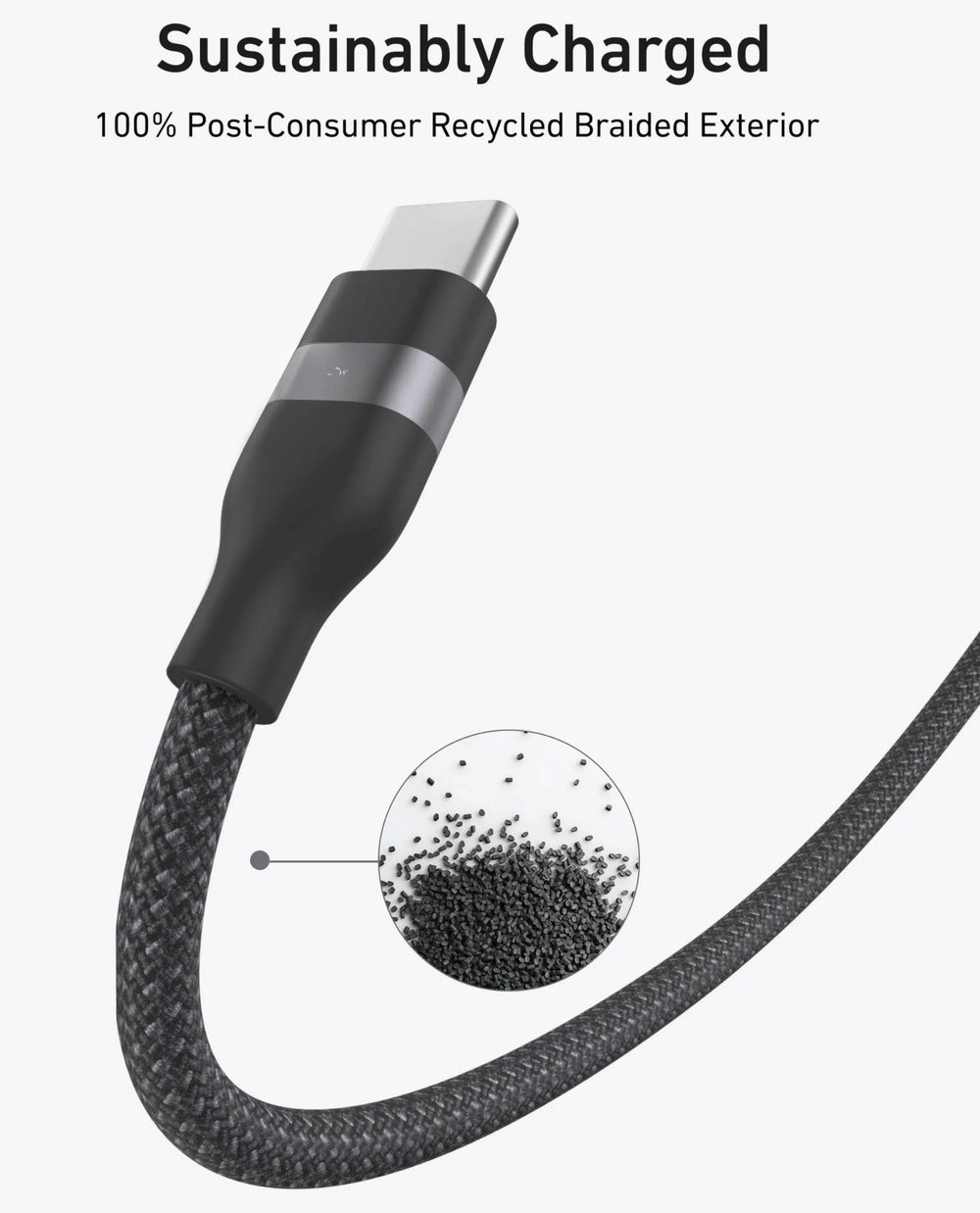 Fast. Colorful. Sustainable. Choose sustainability without sacrificing speed—this high-speed cable comes in 5 vibrant finishes, offering fast 480 Mbps data transfer and exceptional durability thanks to its soft PCR braided construction. (Note: This cable does not support screen mirroring.)