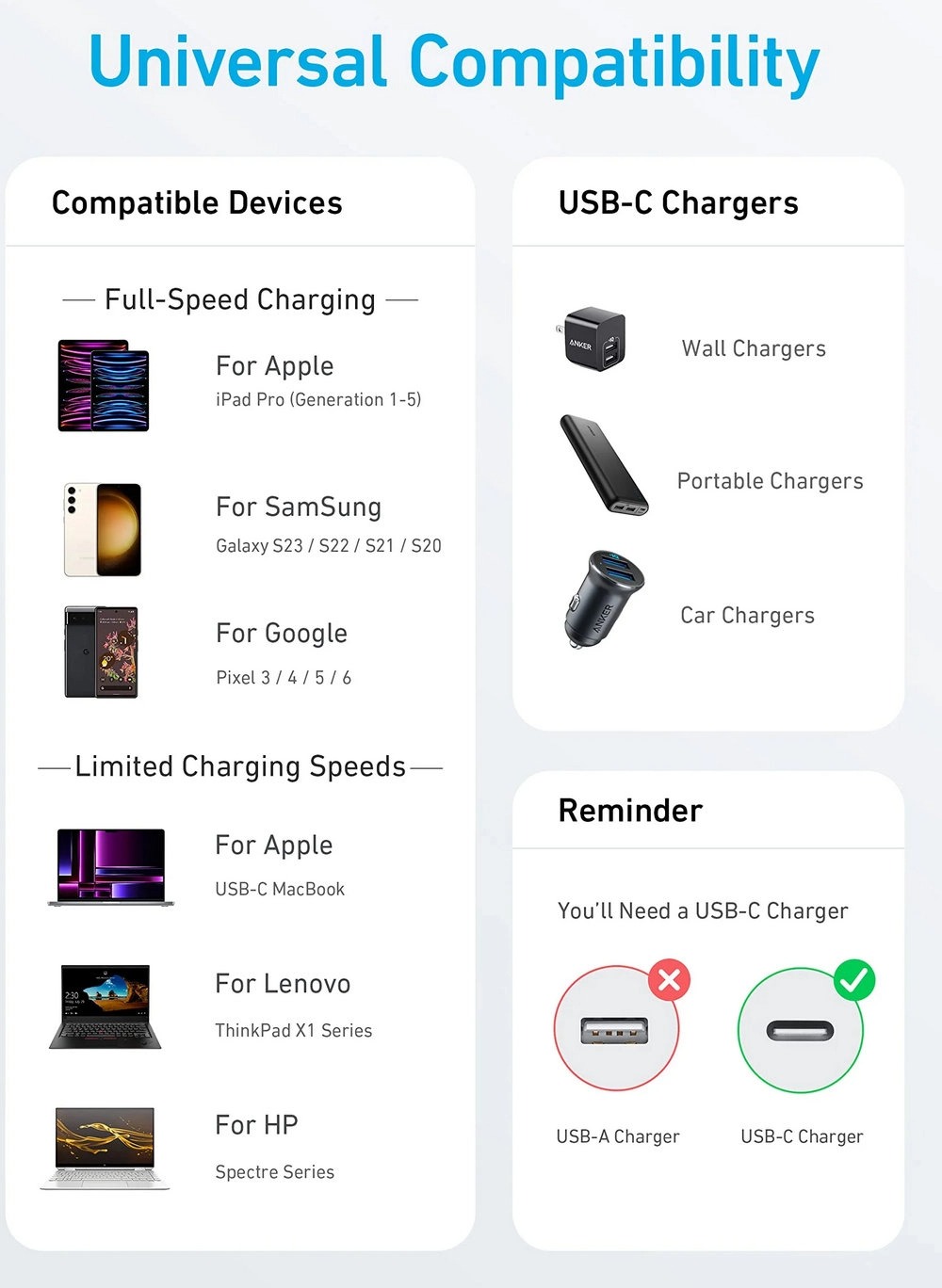 USB-IF compliant for safe, reliable charging for virtually any USB-C device.