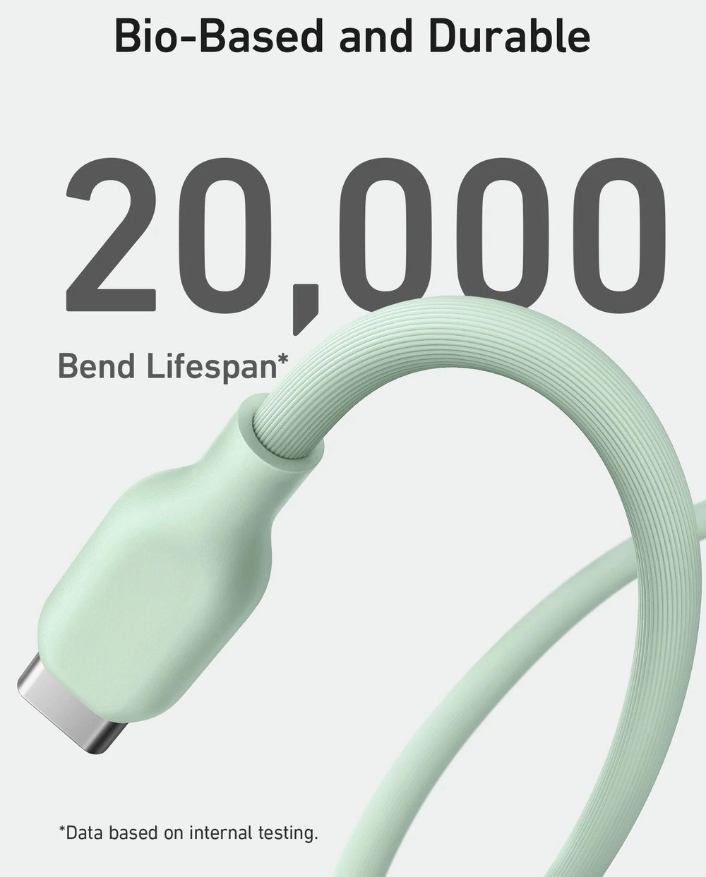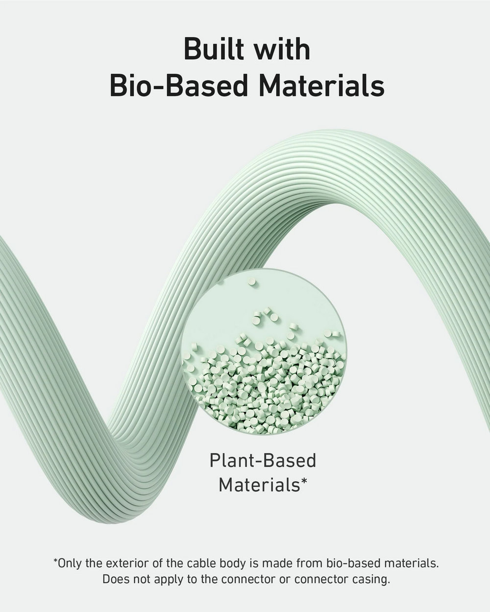 The exterior of the cable body is built using bio-based materials from plants like corn and sugar cane.